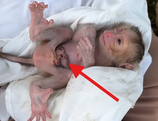 Sometimes, the most touching moments come not from the wild, but from the kindness of people. In a quiet village surrounded by green fields, a tiny newborn baby monkey was found weak and alone. It was so small and fragile that it could barely open its eyes — a life that seemed almost too delicate to survive.