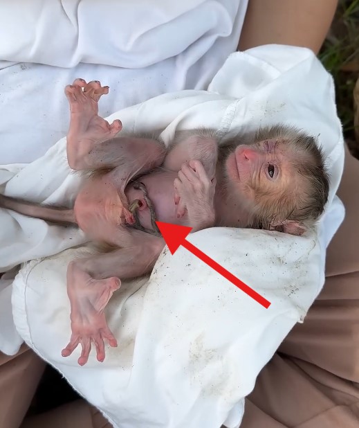 One early morning, a villager heard soft cries near a tree. When he looked closer, he found the newborn monkey lying on the ground, trembling and helpless. Without hesitation, he gently picked it up, wrapped it in a small cloth, and carried it home. That simple act of kindness became the start of a beautiful story.