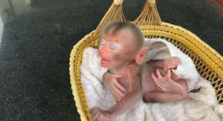 Sadly, life for newborn monkeys is never easy. The fragile baby struggled to feed, sometimes falling behind the others. Each movement looked heavy, as though survival itself was a daily battle. The special point that made it unique also seemed to make it more delicate.